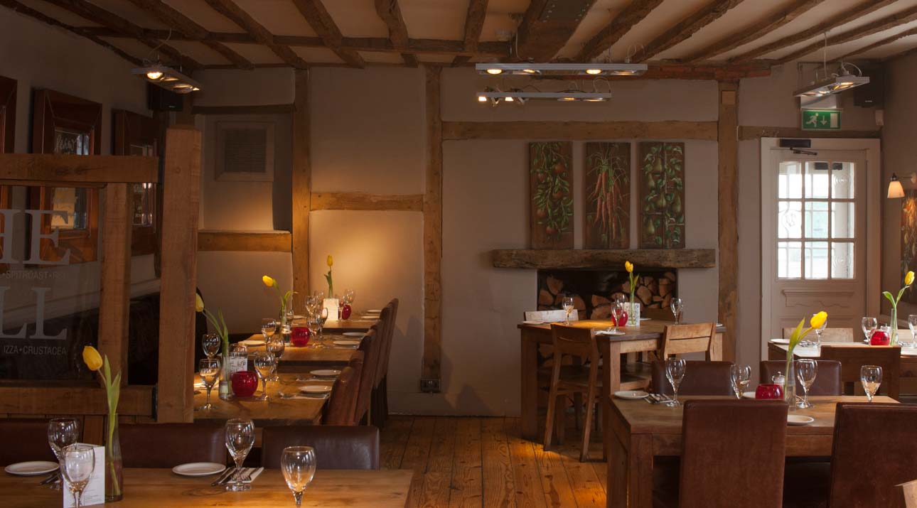 A lot of paint and dirt had accumulated over the years – imagine all that nicotine staining in the days when smoking was allowed in public places like pubs. This was not appropriate for a restaurant, so we blast cleaned the beams to reveal the natural organic beauty of the wood. When combined with new wood fittings and furniture, it created a clean, beautiful setting in which to enjoy good food and wine.
